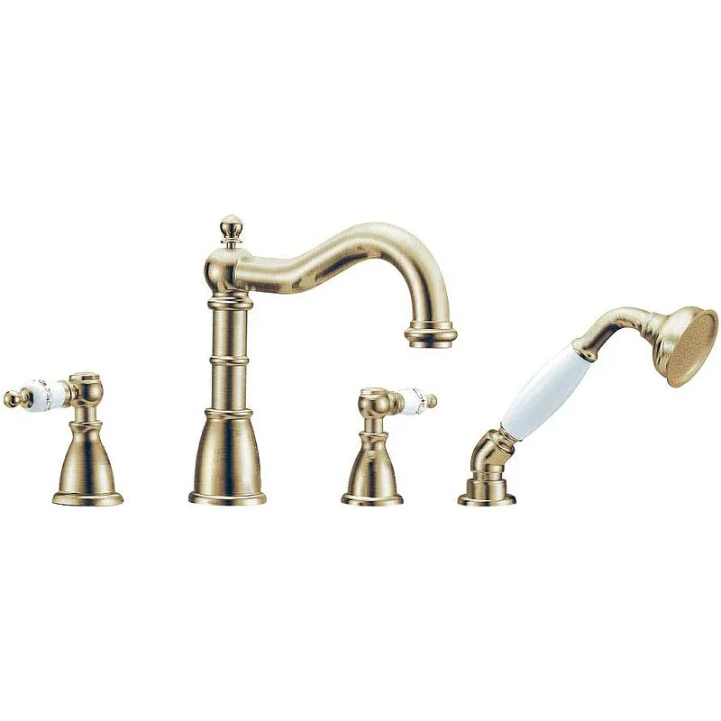 Смеситель на борт ванны Boheme Provanse 394 с душевым гарнитуром.Характеристики: Цвет: бронза. Материал: латунь. Ручки: керамические Provanse. Управление: однорычажное. Механизм: керамический картридж. Запорный клапан: керамическая кран-букса. Излив: поворотный. Стандарт подводки: G 1/2. Тип подводки: гибкая. Аэратор. Количество режимов струи ручного душа: 1. Монтаж: на борт ванны. В комплекте поставки: Смеситель на борт ванны. Ручной душ. Душевой шланг. Гибкая подводка. Комплект креплений.