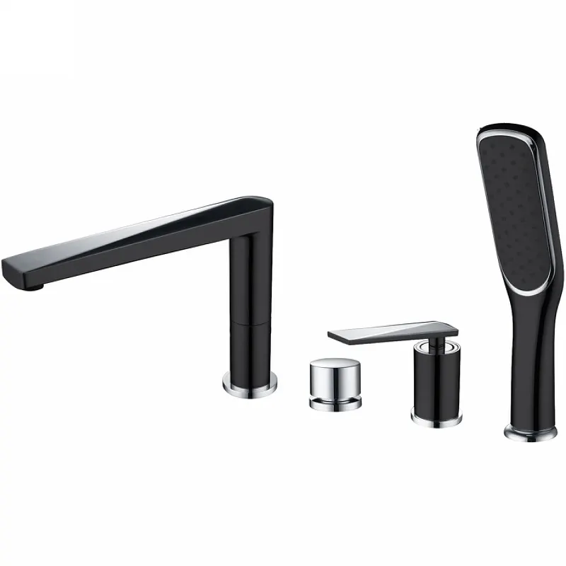 Смеситель на борт ванны Boheme Venturo 370-B с душевым гарнитуром.Характеристики: Цвет: черный, хром. Материал: латунь. Механизм: керамический картридж. Управление: однорычажное. Излив: поворотный. Аэратор. Размер ручного душа (ШхВ): 58х236 мм. Количество режимов струи ручного душа: 1. Стандарт подводки: 1/2. Тип подводки: гибкая. Монтаж: на борт ванны. Отверстия для монтажа: 4. В комплекте поставки: Смеситель. Излив. Душевой шланг. Ручной душ. Держатель ручного душа. Переключатель потоков. Гибкая подводка. Комплект креплений.