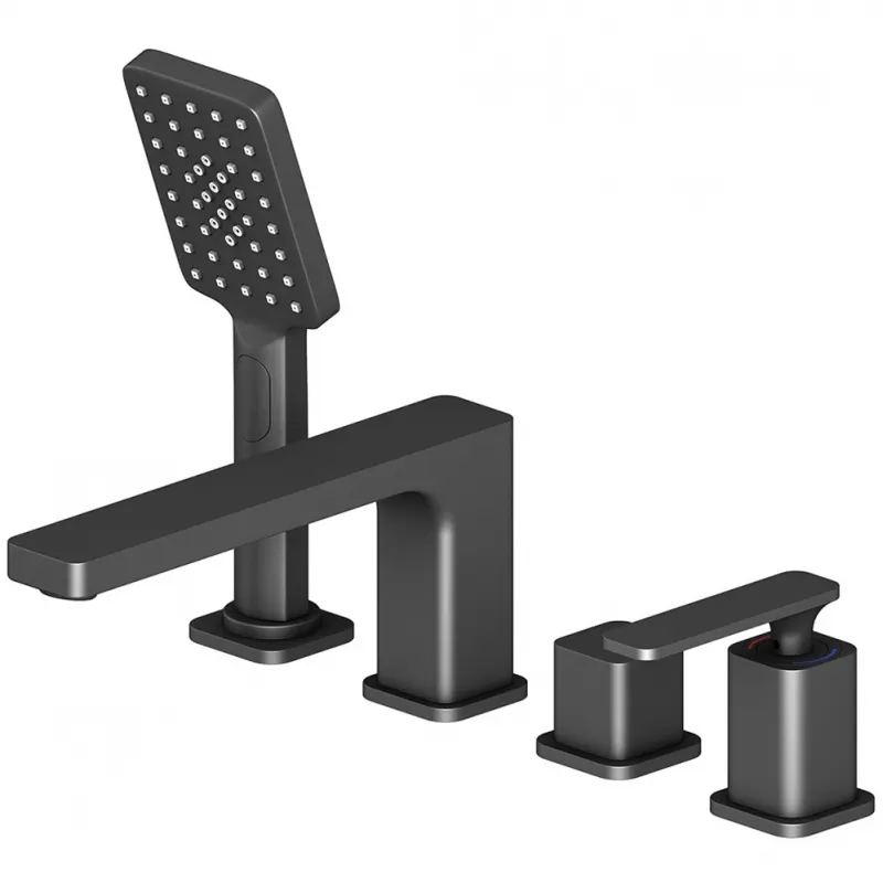 Смеситель на борт ванны Timo Torne 4330/03Y.Однорычажный смеситель с фиксированным изливом, монтируемый в четыре отверстия. Имеет долгий срок эксплуатации за счет качественных деталей, неприхотлив в уходе. Дополнит любой интерьер в современном стиле.Характеристики:Изготовлен из высококачественной латуни класса А с гладким покрытием, которое не теряет цвет со временем, устойчиво к царапинам и превосходно защищает от коррозии.Цвет: черный матовый.Длина излива: 25 см.Металлическая рукоятка.Картридж керамический диаметром 35 мм - гарантия длительного срока службы.Стандарт подключения: G 1/2.В комплекте поставки: смеситель, излив, блок управления режимами, держатель ручной лейки, ручная лейка 3-х режимная, шланг душа 1,5 м, инструкция.