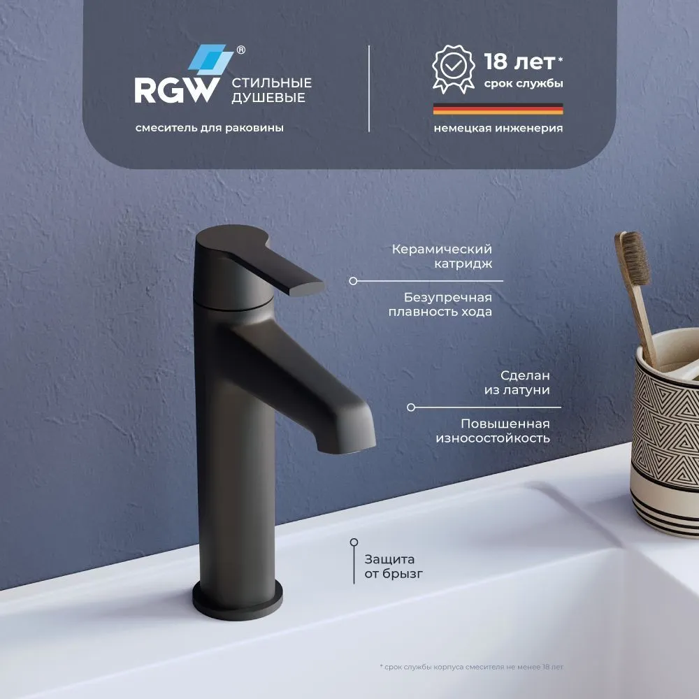 Данный матовый черный смеситель для умывальника RGW — это качественное и стильное решение, которое добавит вашему интерьеру современности и функциональности.