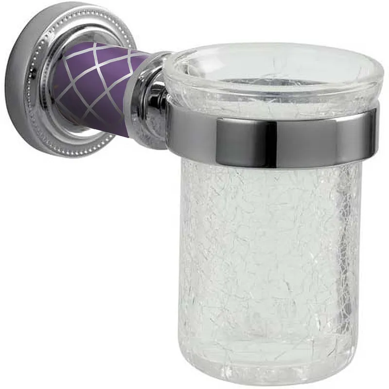 Стакан для зубных щеток Boheme Murano 10904-V-CR.Характеристики: Цвет: хром, фиолетовый. Материал: латунь, стекло. Декор: кракелюр, муранское стекло. Монтаж: настенный. В комплекте поставки: Стакан. Держатель стакана. Крепления.