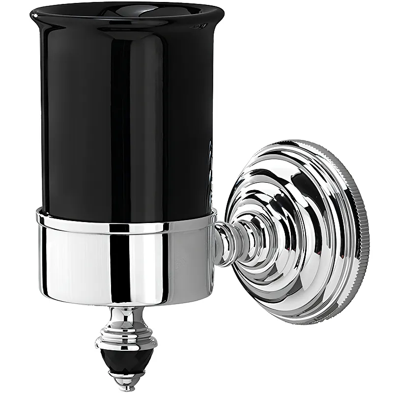 Стакан для зубных щеток Devon&Devon Black Diamond BLKD503CRNE.Характеристики: Цвет держателя: хром. Цвет кристалла: черный. Материал держателя: латунь. Материал стакана: керамика, черного цвета. Поверхность: глянцевая. Метод крепления: шурупы. Монтаж: подвесной. В комплекте поставки: стакан для зубных щеток, держатель, крепления.