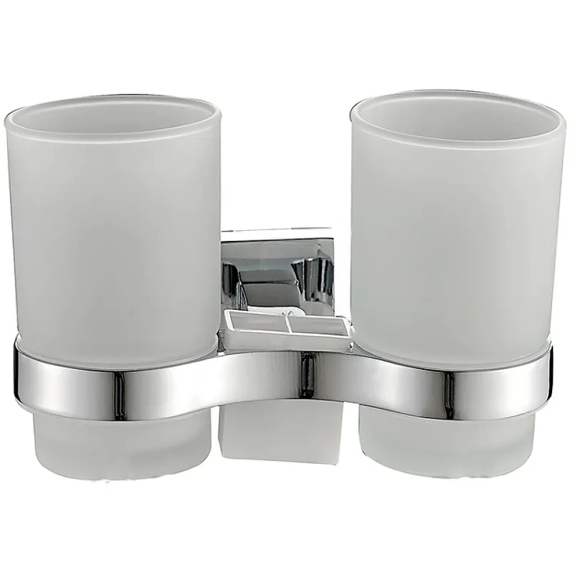 Стакан для зубных щеток Haiba HB8608 двойной.Характеристики: Цвет: хром. Материал держателя: металл. Материал стакана: стекло. Размеры (ШхВхД): 17х9,5х9 см. Монтаж: на стену. В комплекте поставки: стакан с держателем.