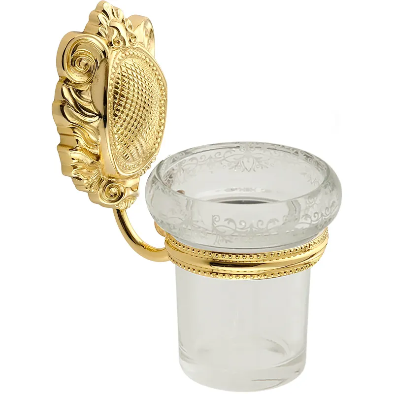 Стакан для зубных щеток Migliore Cleopatra 16677.Аксессуары серии Cleopatra - это высокое качество материалов и безукоризненное исполнение работы.Характеристики: Материал стакана: стекло прозрачное с матовым декором. Материал держателя: латунь. Цвет: золото. Размеры (ШхВхД): 8x16.5x12.3 см. Монтаж: на стену. В комплекте поставки: Стакан для зубных щеток.