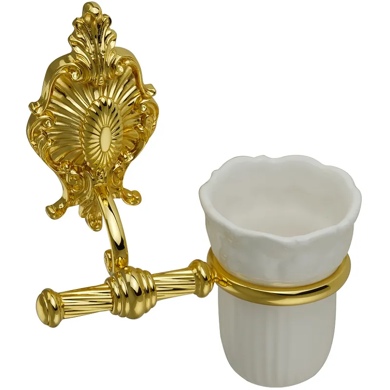 Стакан для зубных щеток Migliore Elisabetta 17052.Характеристики: Цвет: золото. Поверхность: глянцевая. Материал держателя стакана: латунь. Материал стакана: керамика. Монтаж: настенный. В комплекте поставки: Стакан для зубных щеток. Набор для монтажа.