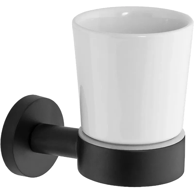 Стакан для зубных щеток Remer Guest GS15NO.Характеристики: Цвет: черный матовый. Материал: латунь, керамика. Размер (ШxВxГ): 70x95x110 мм. Метод крепления: шурупы. Монтаж: настенный. В комплекте поставки: Стакан для зубных щеток. Держатель.