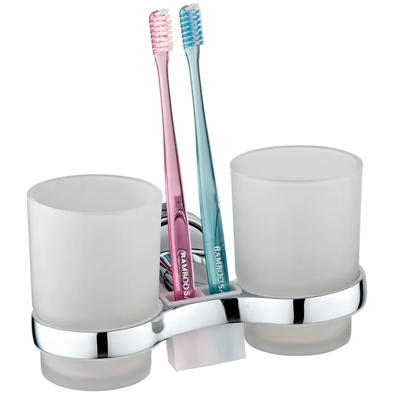 Стакан для зубных щеток Ростовская Мануфактура Сантехники A6021 двойной.Характеристики: Цвет: хром. Материал: нержавеющая сталь, цинк, стекло. Габариты (ШхВхД): 160х96х110 мм. Монтаж: на стену. В комплекте поставки: Стакан для зубных щеток.