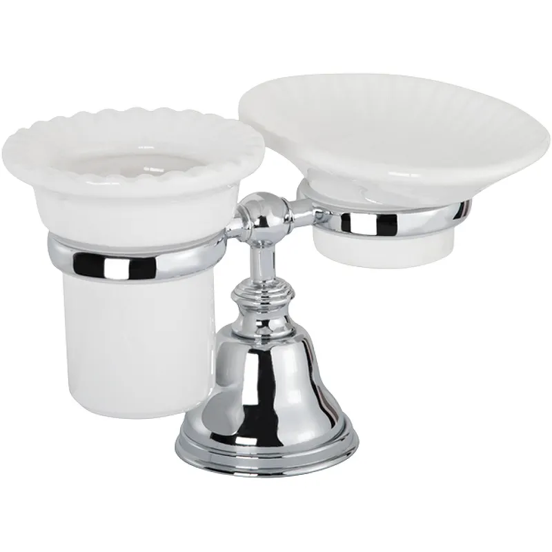 Стакан для зубных щеток с мыльницей TW Harmony TWHA141cr.Характеристики: Цвет: хром. Материал: латунь, керамика. Размеры: (ШхВхД): 20.5х12.5х12.5 см. Монтаж: настольный. В комплекте поставки: Стакан для зубных щеток. Мыльница.