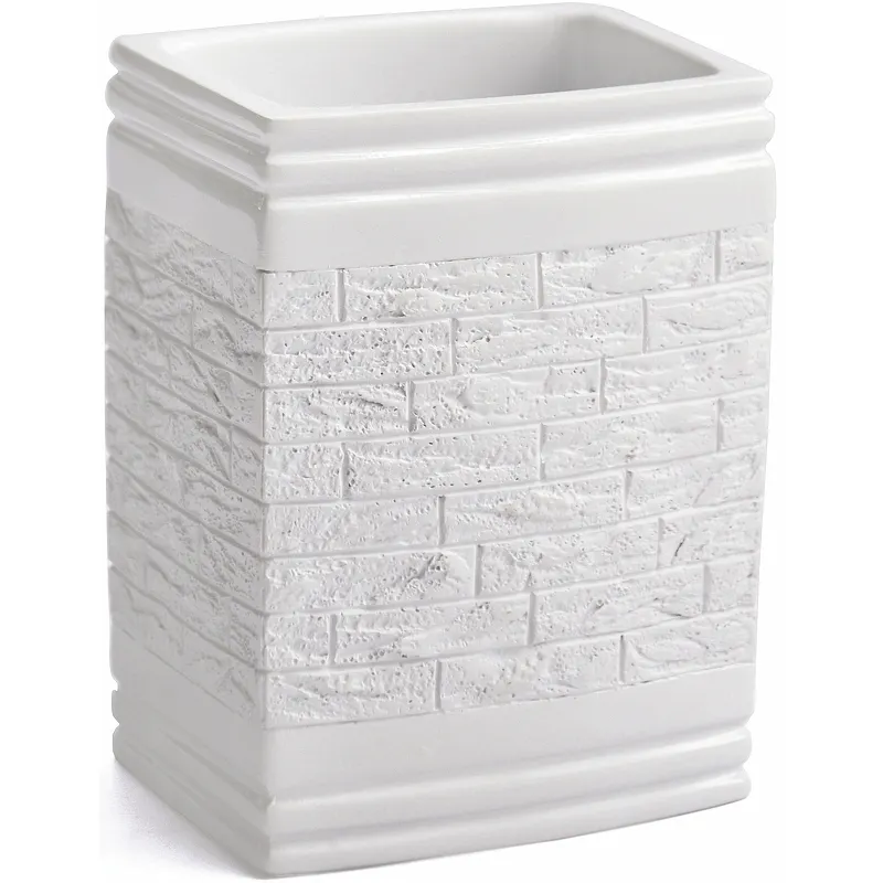 Стакан для зубных щеток WasserKRAFT Main K-4728.Характеристики: Цвет: белый. Фактура: матовая, имитирующая кирпичную кладку. Материал: полирезин. Монтаж: настольный. В комплекте поставки: Стакан для зубных щеток.