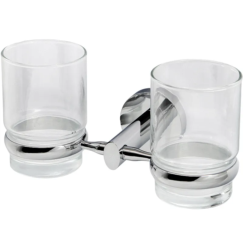Стакан для зубных щеток WasserKRAFT Rhein K-6228D двойной.Характеристики: Цвет: хром. Материал: металл, прозрачное стекло. Уплотнительные пластиковые кольца. Покрытие: хромоникелевое. Монтаж: настенный. В комплекте поставки: Стакан для зубных щеток двойной. Набор для монтажа.