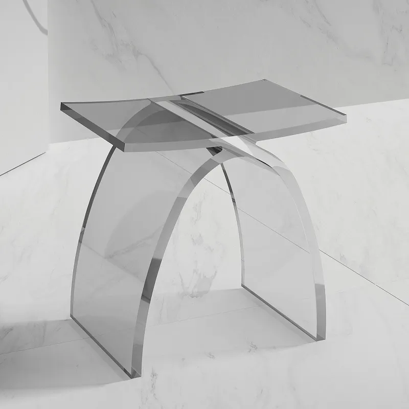 - Современный дизайн стульчика для ванной: прозрачный цвет и стильная конструкция идеально подходят для современных ванных комнат.