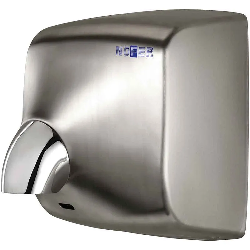 Сушилка для рук Nofer Windflow 01151.S.Характеристики: Цвет: нержавеющая сталь матовая. Материал корпуса: нержавеющая сталь толщиной 1.5 мм. Сопло сделано из материала Zamac (сплава цинка, алюминия, магния и меди). Габариты (ШxВxГ): 280x280x210 мм. Антивандальный корпус. Время сушки рук: 10-12 секунд. 2 двигателя: 6500 об/мин. Мощность: 2450 W. Температура воздуха : 55 градусов. Термостат перегрева двигателя: 105 градусов. Скорость потока воздуха: 117 км/ч. Уровень шума: 78 Дба. Дистанция работы сенсора: 10-15 см. Сенсор может быть отрегулирован до 30 cm. Степень защиты: IPX1. Расход воздуха 5500 л/мин. Мощность нагревательного элемента : 2200 W. Универсальный мотор с щетками (обслуживание не требуется). Подходит для общественных зон. Монтаж: настенный. В комплекте поставки: Сушилка для рук. Комплект креплений. Инструкция.