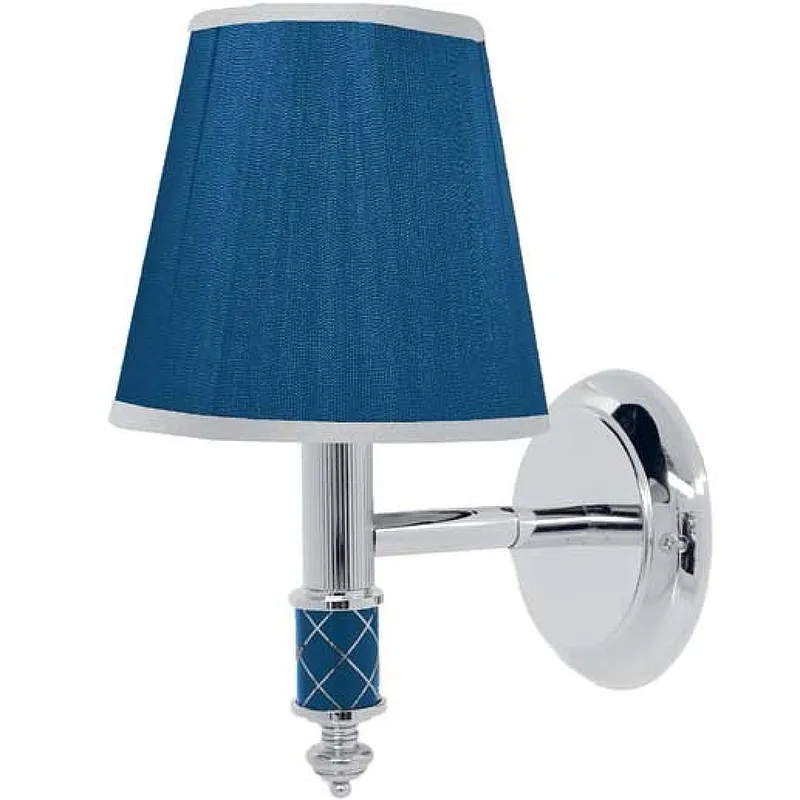 Светильник Boheme 769.Характеристики:Цвет: хром, синий. Материал: латунь. Монтаж: на стену. Размеры (ШхВхД): 135х265х175 мм. Высота абажура: 110 мм. Диаметр настенного основания: 120 мм.В комплекте поставки: светильник.