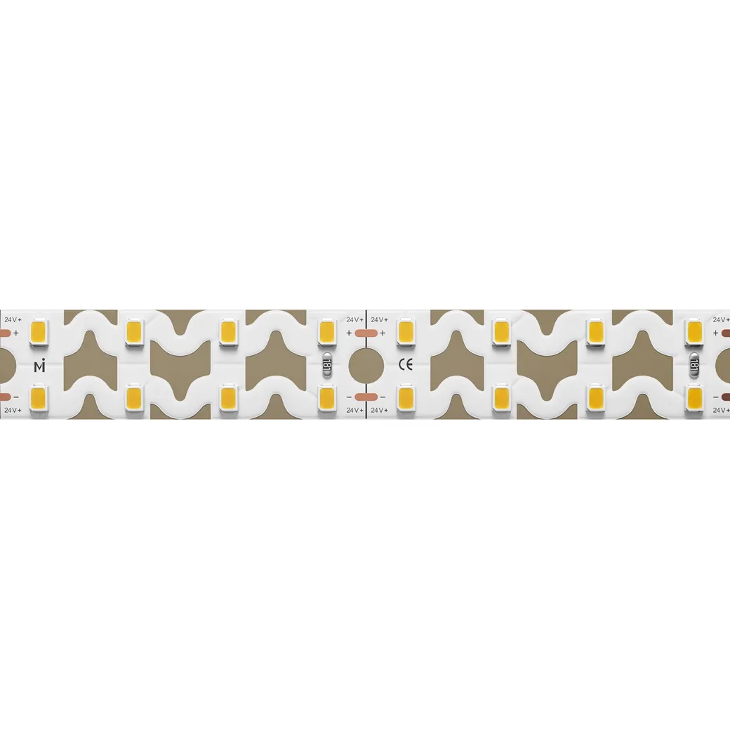 Лента с изгибом в плоскости мощностью 9.6 Вт/м (48 Вт на 5 м). Цветовая температура - 3000К и 4000К в зависимости от выбранной модели. Плотность светодиодов — 120 шт/м (600 шт на 5 м). Размер — 6х5000 мм, кратность реза — 50 мм. Индекс цветопередачи 90Ra. Угол рассеивания 120°. Рабочее напряжение 24 В. Для создания световых линий с возможностью включения белого цвета в декоративной подсветке потолочных ниш. Идеальное решение для подсветки сложных рекламных конструкций нестандартной формы.