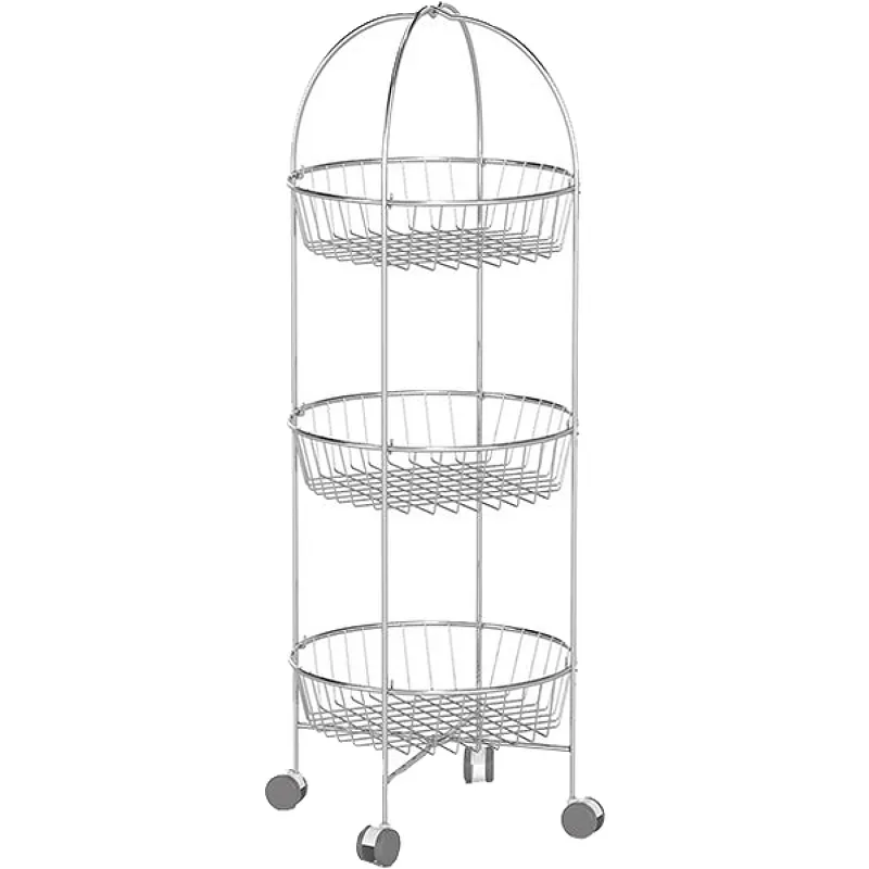 Круглая тележка для кухни Tekno-tel MG001 на колёсных опорах.Характеристики: Цвет: хром. Материал: металл. Поверхность: глянцевая. Размер (ШхДхВ): 330x330x740 мм. Количество ярусов: 3. Форма: круглая. В комплекте поставки: Тележка для кухни.