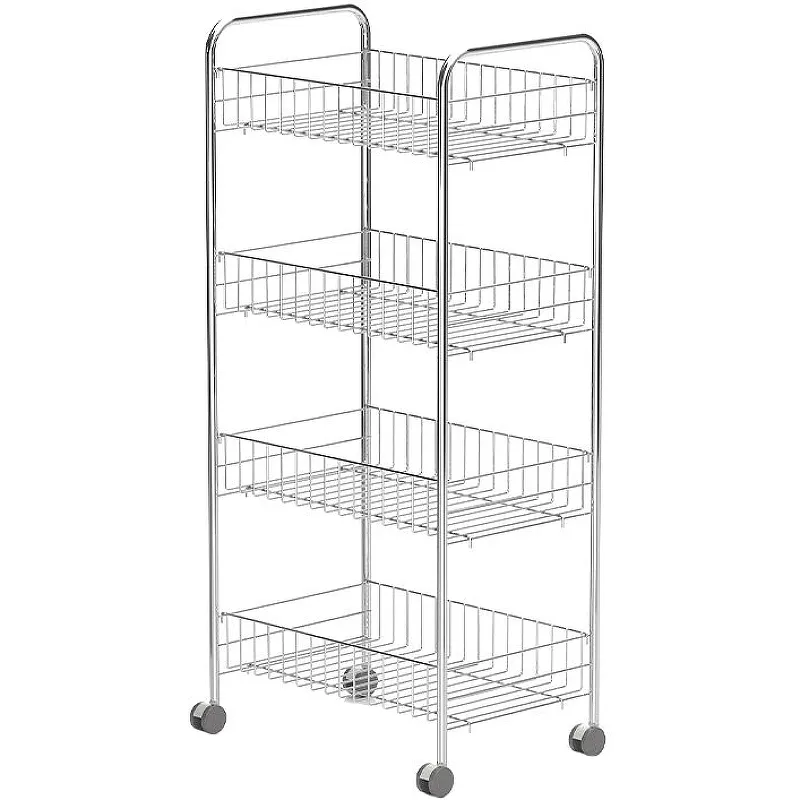 Прямоугольная тележка для кухни Tekno-tel MG004 на колёсных опорах.Характеристики: Цвет: хром. Материал: металл. Поверхность: глянцевая. Размер (ШхДхВ): 390x260x860 мм. Количество ярусов: 4. Форма: прямоугольная. В комплекте поставки: Тележка для кухни.