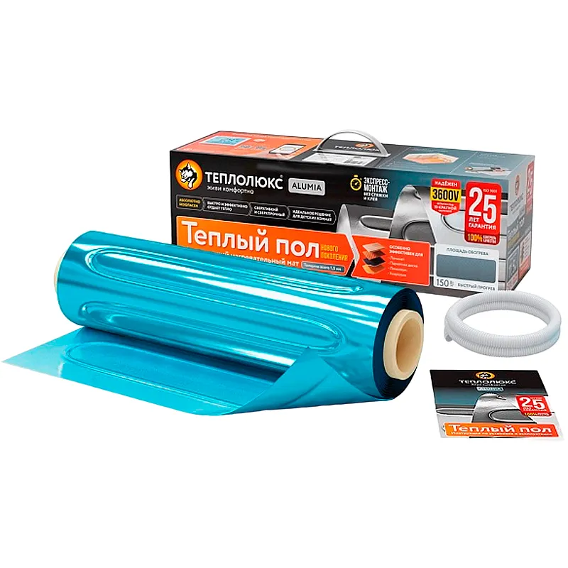 Теплый пол Теплолюкс Alumia 1200 Вт - идеальное решение для создания комфортного обогрева в вашем доме. Этот комплект теплого пола обеспечивает равномерный нагрев на площади 8 м². Укладка под ламинат, ковролин, линолеум или паркетную доску возможна без стяжки, что упрощает монтаж и позволяет использовать пол сразу после установки.