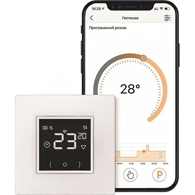 - Управление обогревом по Wi-Fi: Терморегулятор Теплолюкс предлагает удалённое сенсорное управление, позволяя установить комфортную температуру.