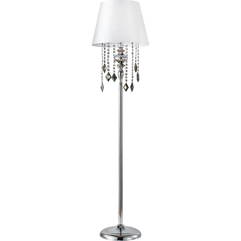 Торшер Crystal Lux Mercedes PT1 Chrome Smoke Серый Хром — идеальное решение для создания стильной атмосферы в вашем доме. Этот напольный светильник из Испании выполнен в современном стиле арт-деко и станет прекрасным дополнением интерьера спальни или гостиной. Арматура из металла и абажур из текстиля и пластика обеспечивают надежность и долговечность. Подвески из хрусталя дымчатого цвета добавляют элегантности, а мощность в 60 Вт гарантирует достаточное освещение.