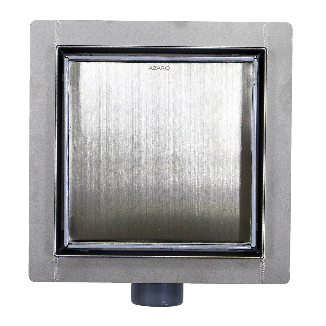 Трап для душа AZARIO 150х150 металлический, поворотный сифон 360°, решетка "под плитку", горизонтальный выпуск арт-AZZ3TILE150