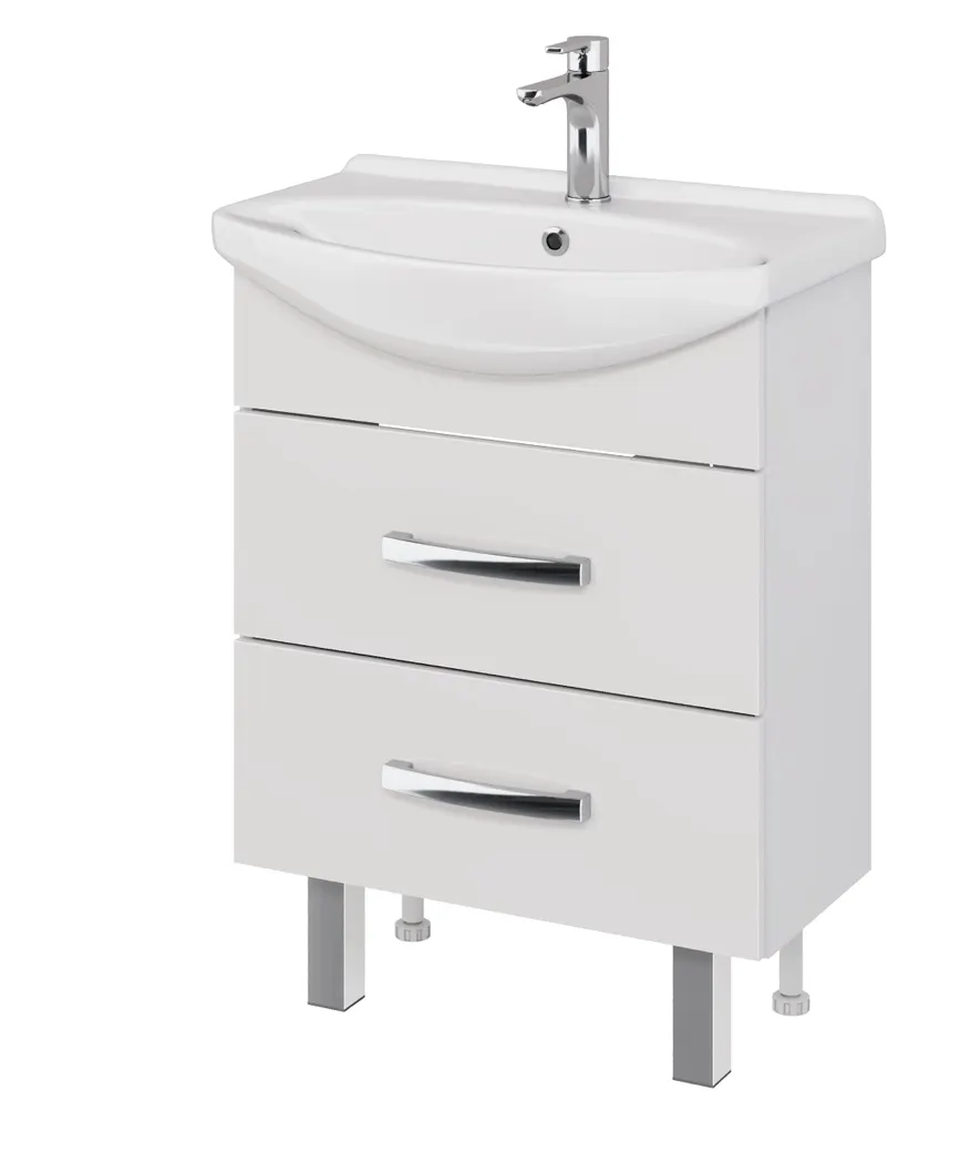 Тумба ALDA, 65 см, подвесная/напольная, 2 ящика, белый глянец, под ум. Лагуна 65