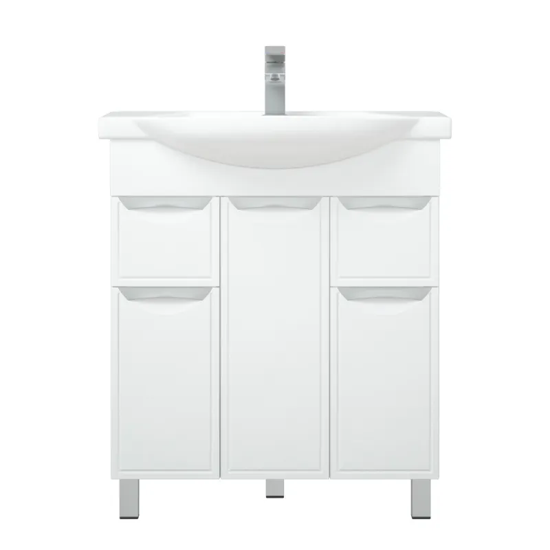 тумба Альфа 75 (Элеганс 75) 2 ящика 3 двери напольная белая без умывальника арт-MFR80016WT