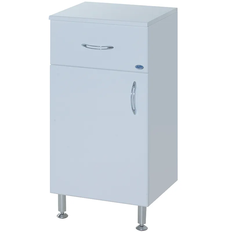 Тумба Bellezza 40 4635805090015 Белая — идеальное решение для оптимизации пространства в небольшой ванной комнате. Данная напольная тумба без раковины, выполненная в современном стиле, гармонично дополнит ваш интерьер, привнося комфорт и уют. Благодаря влагостойкому МДФ с четырехслойным лаковым покрытием, она устойчива к влажности и перепадам температур, что делает её отличным выбором для ванной.