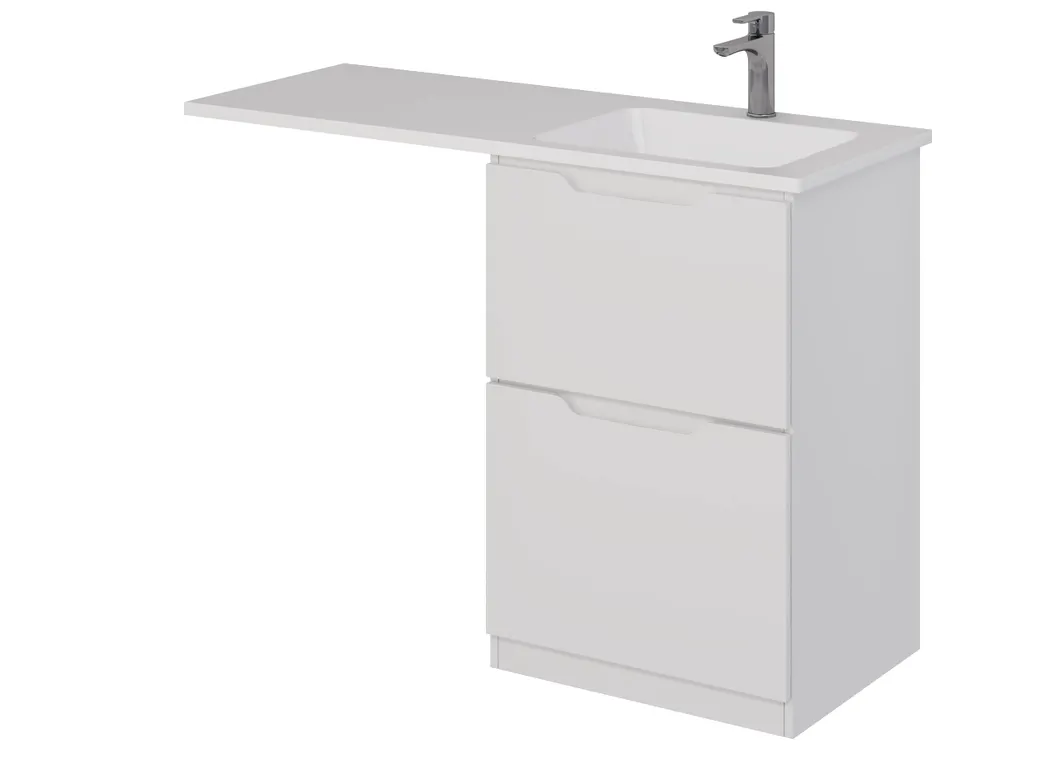 - Элегантный белый глянец. Тумба с глянцевым покрытием создаёт ощущение чистоты и простора, идеально подходя для современной ванной комнаты.