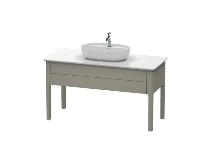 Тумба для консоли, Duravit, Luv, ширина, мм-1338, глубина, мм-570, высота, мм-743, тип установки-напольный, форма мебели-прямоугольная, раковина-необходимо заказать, консоль/столешница-необходимо заказать, ящики-1, открывание-выдвижное, материал корпуса-ДВП лак, материал фасада-ДВП лак, цвет-каменно-серый шелковисто-матовый, регулятор высоты, встроенный в ножку (-5 мм + 20 мм)