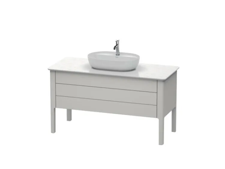 Тумба для консоли, Duravit, Luv, ширина, мм-1338, глубина, мм-570, высота, мм-743, тип установки-напольный, форма мебели-прямоугольная, раковина-необходимо заказать, консоль/столешница-необходимо заказать, ящики-2, открывание-выдвижное, материал корпуса-ДВП лак, материал фасада-ДВП лак, цвет-скандинавский белый шелковисто-матовый, верхний ящик с вырезом и крышкой для сифона, регулятор высоты, встроенный в ножку (-5 мм + 20 мм)