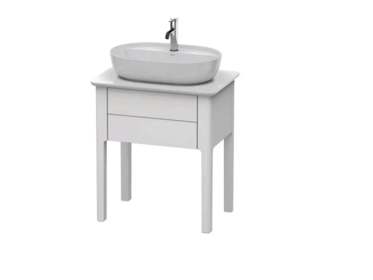Тумба для консоли, Duravit, Luv, ширина, мм-688, глубина, мм-450, высота, мм-743, тип установки-напольный, форма мебели-прямоугольная, раковина-необходимо заказать, консоль/столешница-необходимо заказать, ящики-1, открывание-выдвижное, материал корпуса-ДВП лак, материал фасада-ДВП лак, цвет-скандинавский белый шелковисто-матовый, регулятор высоты, встроенный в ножку (-5 мм + 20 мм)