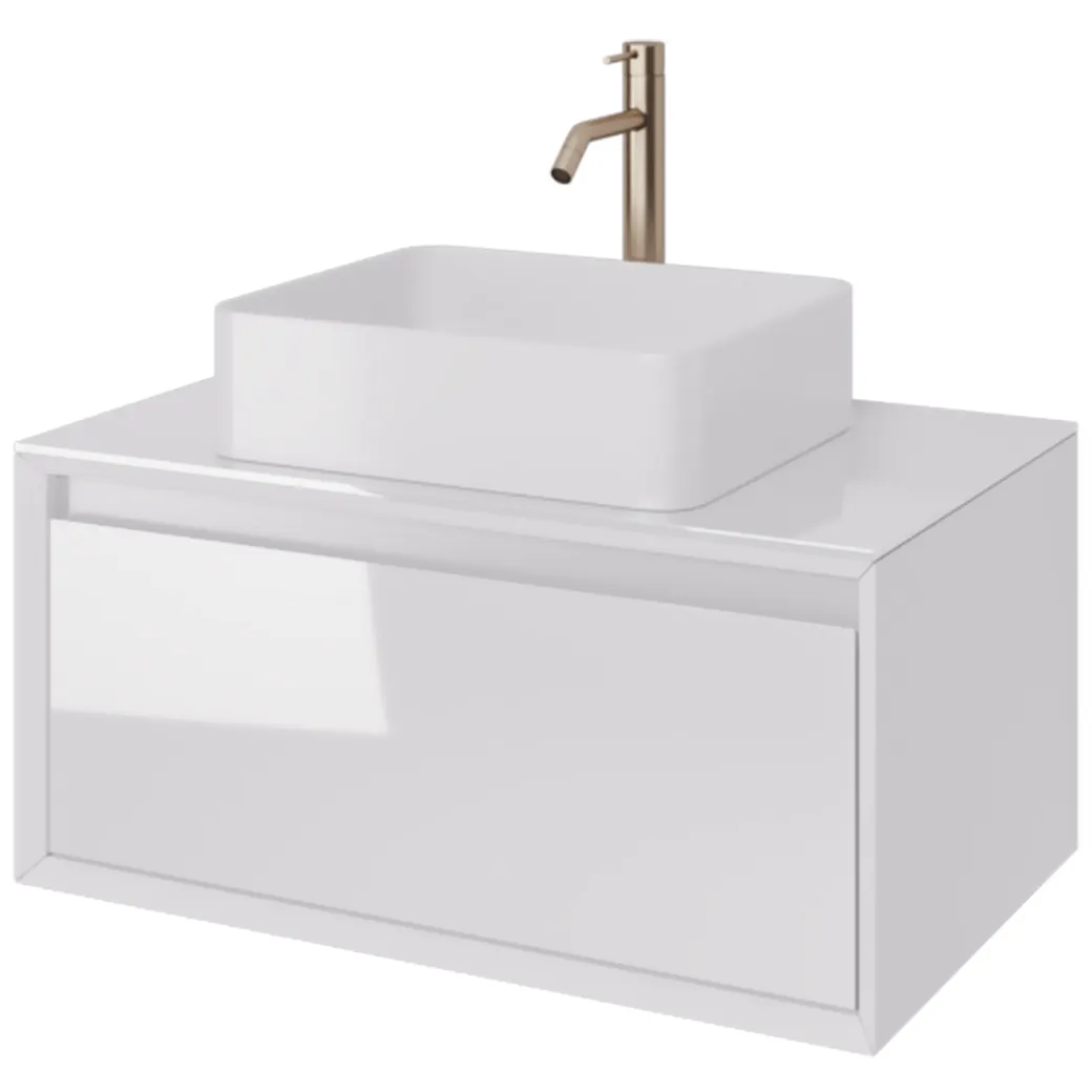Тумба INSIGHT, 80 см, подвесная, стеклянная столешница с отверстиями для установки накладного умывал