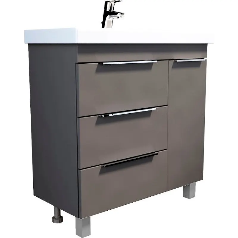 - Вместительная система хранения: Оснащена одной распашной дверцей и тремя выдвижными ящиками, что позволяет удобно организовать хранение.