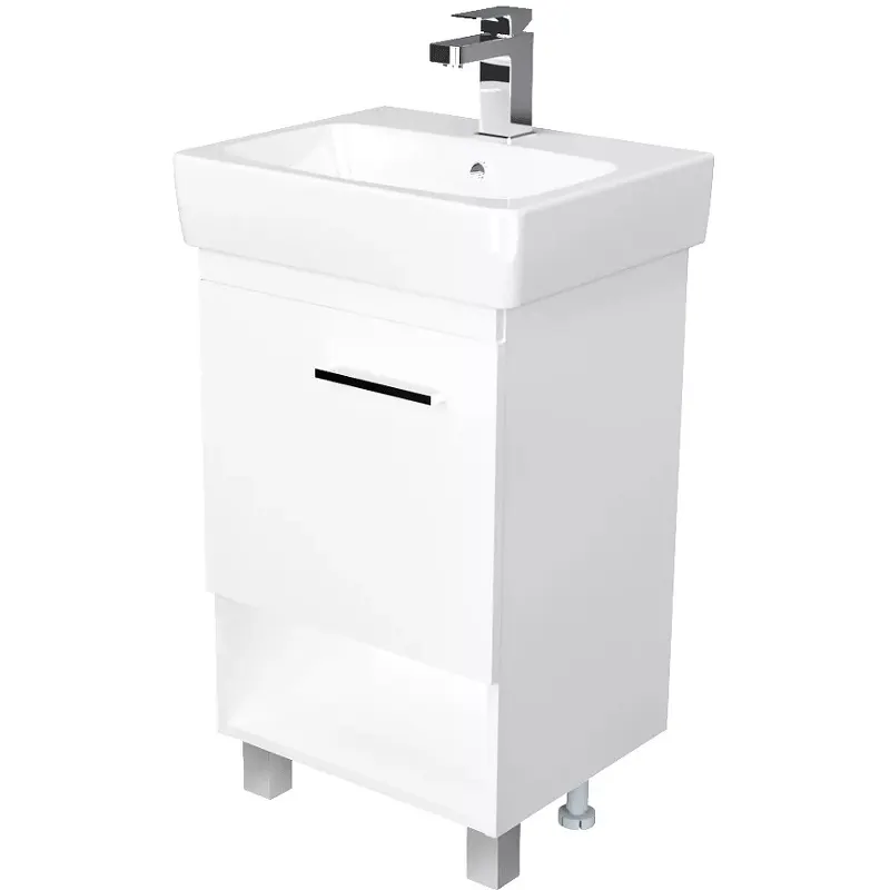 Тумба под раковину 1MarKa Tera 50 У76057 — идеальное решение для вашей ванной комнаты. Этот элегантный элемент мебели сочетает в себе стильный дизайн и функциональность. Напольная тумба с белым глянцевым покрытием и фасадом из МДФ дополнит интерьер современного стиля. Она оснащена одной распашной дверцей и открытой нижней полкой, что обеспечивает удобную систему хранения.