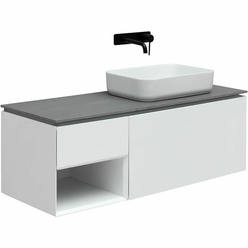 Тумба под раковину Allen Brau Infinity 120 R 1.21008.WM подвесная с подсветкой.Характеристики: Цвет: белый матовый. Материал корпуса: ВЛДСП/МДФ. Материал фасада: МДФ. Покрытие корпуса и фасада: эмаль/матовая. Габариты корпуса тумбы (ШхВхГ): 1192х408х456 мм. Тип подсветки: светодиодная. Ориентация: правосторонняя. Система хранения: 2 выдвижных ящика, 1 внутренний ящик, открытая полка. Монтаж: подвесной. Оснащение: механизм доводчика Hettich (плавное закрывание), метабоксы. В комплекте поставки: Тумба под раковину.