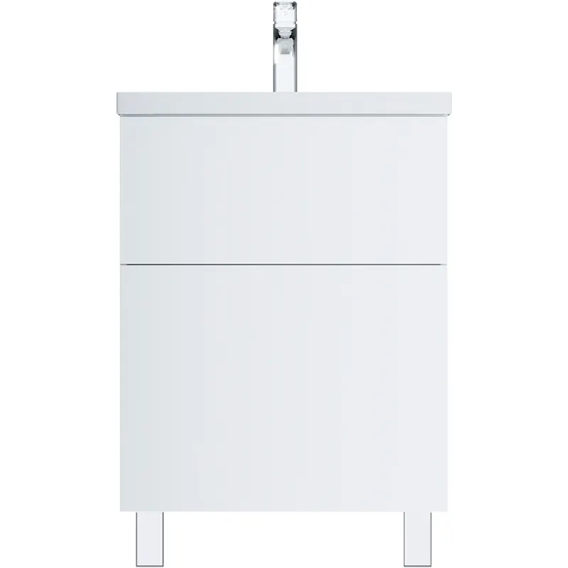 Тумба под раковину AM.PM Gem 60 M90FSX06022WG32 белая, с глянцевой поверхностью, с двумя выдвижными ящиками, с двумя хромированными ножками, для длительного срока службы в ванных комнатах с повышенной влажностью. Дизайн от инновационной компании DanelonMeroni. Безупречный баланс между функциональностью и дизайном. Компактное решение: узкая база с глубокими ящиками. Материал: высококачественный ДСП. Покрытие: долговечные итальянские краски и эмали. Специальная технология покраски в семь слоев. Насыщенный цвет в течение всего срока службы. Экологически чистые материалы. Монтаж: комбинированный. Крепление к стене: два навеса. Дополнительные напольные опоры: две ножки. Удобный демонтаж без помощи инструментов, легкая регулировка. Отделения: верхнее: выдвижной ящик, разделители для удобного хранения; нижнее: выдвижной ящик, один отсек. Система Push to Open: ящики открываются нажатием на любую их часть. Система Soft-Close: доводчики для плавного закрывания. Максимальная нагрузка на ящик в сегменте: до 35 кг. Надёжное соединение направляющей и ящика при помощи фиксатора. В комплекте поставки: тумба.