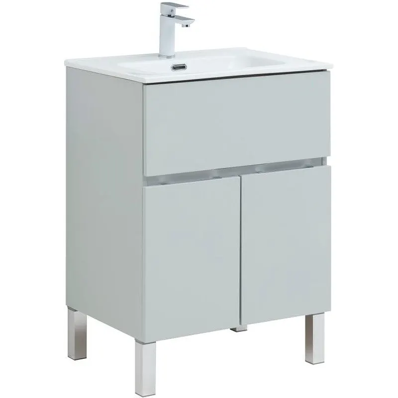 Тумба под раковину Aquanet Алвита New 60 277548 — идеальное решение для современного интерьера ванной комнаты. Выполненная в сером матовом цвете, тумба сочетает в себе стиль и функциональность. Напольная установка позволяет легко разместить ее в любом пространстве, а высококачественные материалы гарантируют долговечность и устойчивость к влаге.
