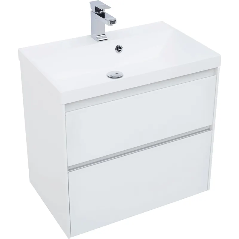 Подвесная тумба под раковину Aquanet Гласс 70 206700. Элегантная и комфортная мебель прекрасно дополнит современный интерьер ванной комнаты.Технические данные: Цвета: белый. Материал корпуса МДФ. Материал фасада: МДФ, стекло. Покрытие: эмаль глянцевая. Габариты корпуса тумбы (ШхВхД): 69x61x44,5 см. Система хранения: 2 выдвижных ящика с механизмом доводчика. Ориентация: универсальная. Монтаж: подвесной. В комплекте поставки: тумба под раковину.