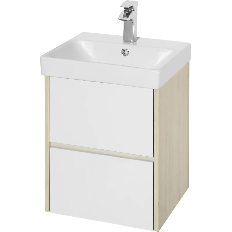 - Универсальный стиль: Белый цвет и древесный узор делают [тумбу с раковиной] идеальной для любого современного интерьера.