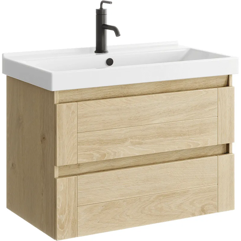 - Эстетичный дизайн: Подвесная конструкция и цвет Дуб Давос придают вашей ванной современный и изысканный вид.