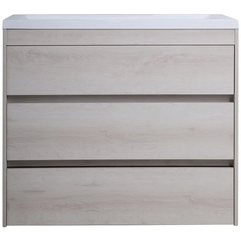 Тумба под раковину Art&Max Family-900-3C-PIA-PB.Технические данные: Цвет: сканди. Покрытие: пленка. Фасад и корпус: ЛДСП. Форма: прямоугольная. Размеры (ШхДхВ): 89,6х48х80 см. Отделения: 3 выдвижных ящика, нижний ящик - детская ступенька. Направляющие скрытого монтажа с доводчиками. Монтаж: на пол. В комплекте поставки: тумба под раковину,