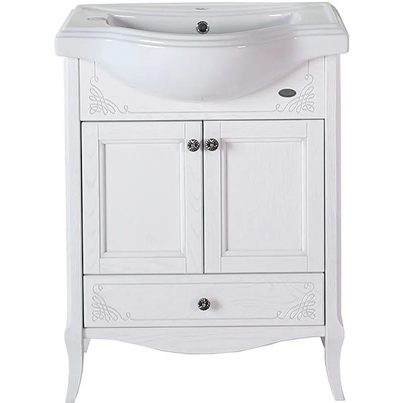 Тумба под раковину ASB-Woodline Салерно 65 9695 Белая с патиной Серебро