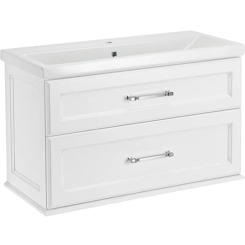 Тумба под раковину ASB-Woodline Венеция 100 11956 подвесная Белая с патиной Серебро