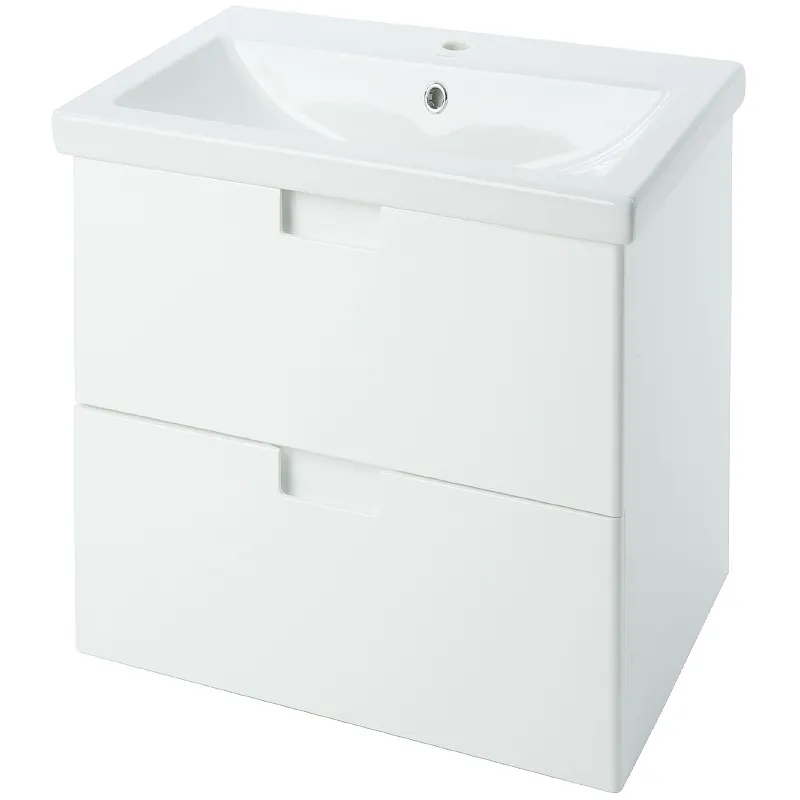 - Продуманный дизайн: прямоугольная форма тумбы и раковины обеспечивает компактность и функциональность.