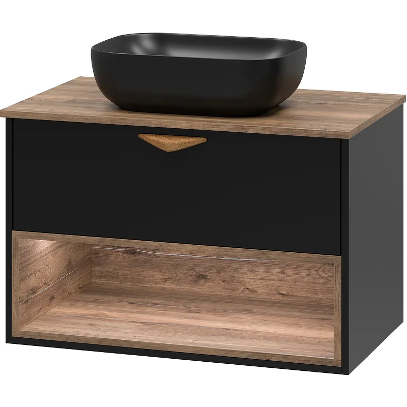 Тумба под раковину Brevita Bergen 80 BER-07080-19-02-1Я подвесная Черная матовая Дуб Галифакс олово