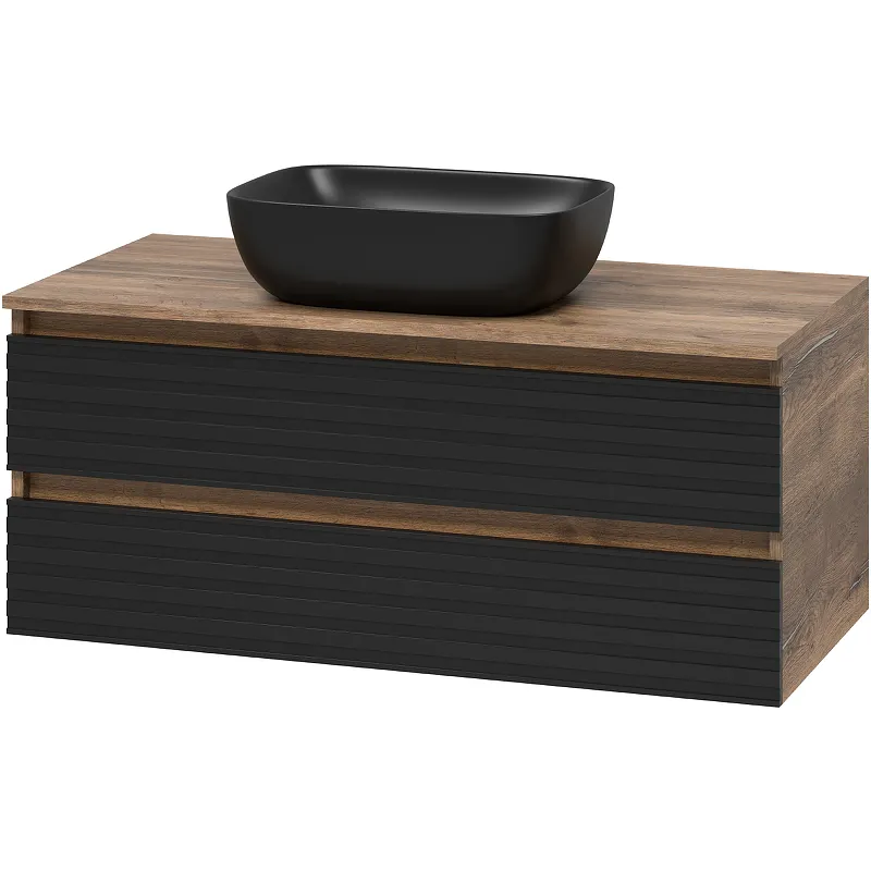 Тумба под раковину Brevita Dakota 100 DAK-09100-19/02-2Я подвесная Черный кварц Дуб Галифакс олово