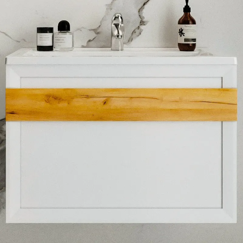 - Современный дизайн: Белый глянец и прямоугольная форма тумбы подчёркивают стиль вашей ванной комнаты.