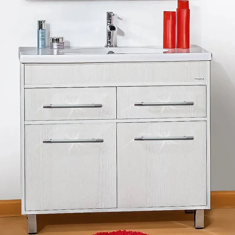 - Удобная система хранения: Тумба с раковиной обеспечивает оптимальную организацию благодаря 4 ящикам, верхний из которых разделен на две части.