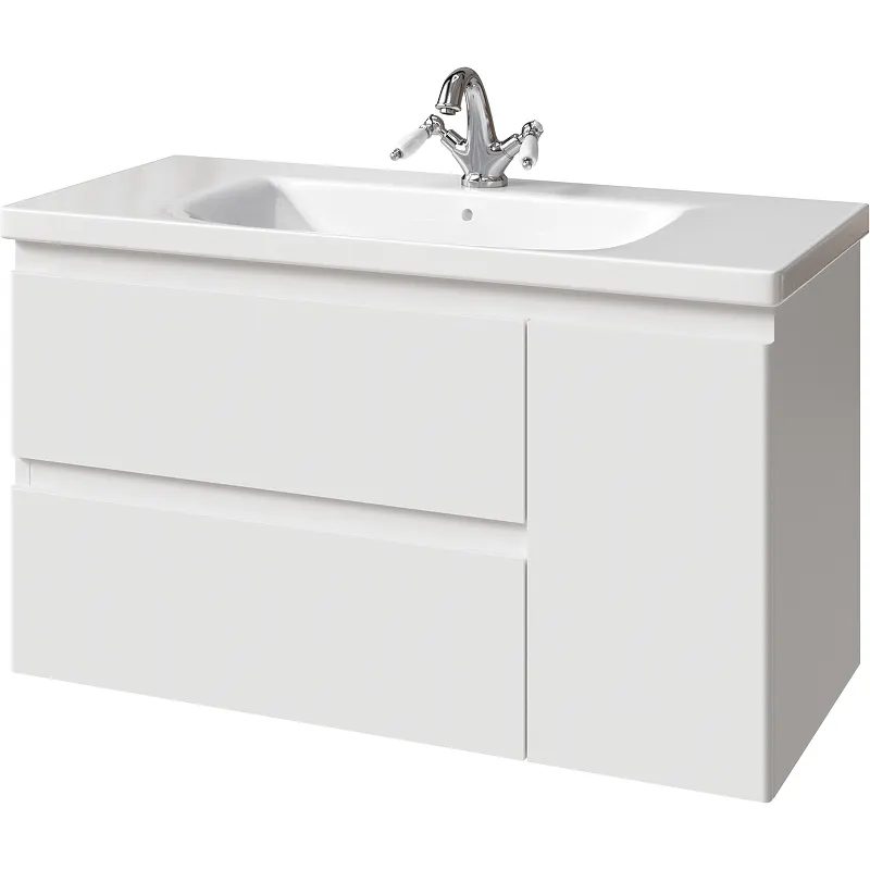 - Эргономичное хранение: Два выдвижных ящика и распашная дверца делают данную тумбу идеальной для хранения всех необходимых принадлежностей, обеспечивая порядок в ванной комнате.
