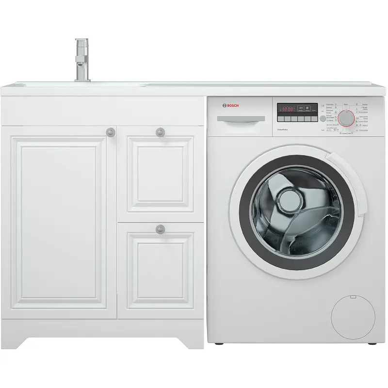 - Практичная система хранения: Тумба под раковину оснащена дверцами, полками и ящиками, что обеспечивает удобное хранение всех необходимых принадлежностей.